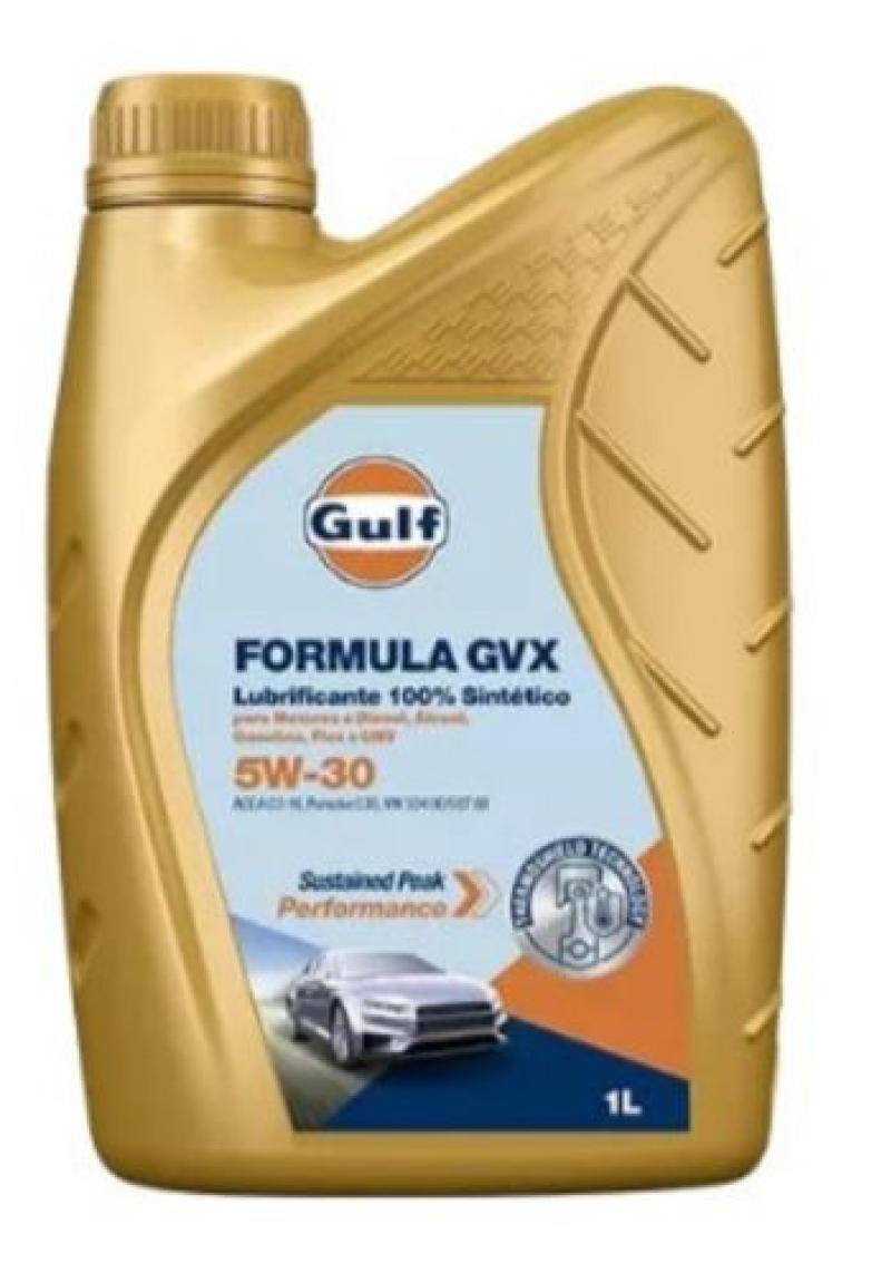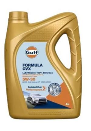 Gulf Fórmula GVX 5W-30 é um óleo sintético para motores projetado para oferecer desempenho excepcional e intervalos de troca de óleo prolongados, em veículos Volkswagen movidos a combustível com teor de Enxofre Ultrabaixo. Sua tecnologia de aditivos SAPS (cinzas sulfatadas, fósforo e enxofre) ajuda a prolongar a vida útil e manter a eficiência dos dispositivos de tratamento pós-exaustão, como os Filtros de Partículas Diesel (DPFs) e os Conversores Catalíticos de Gasolina, além de fornecer proteção excepcional contra depósito e desgaste.